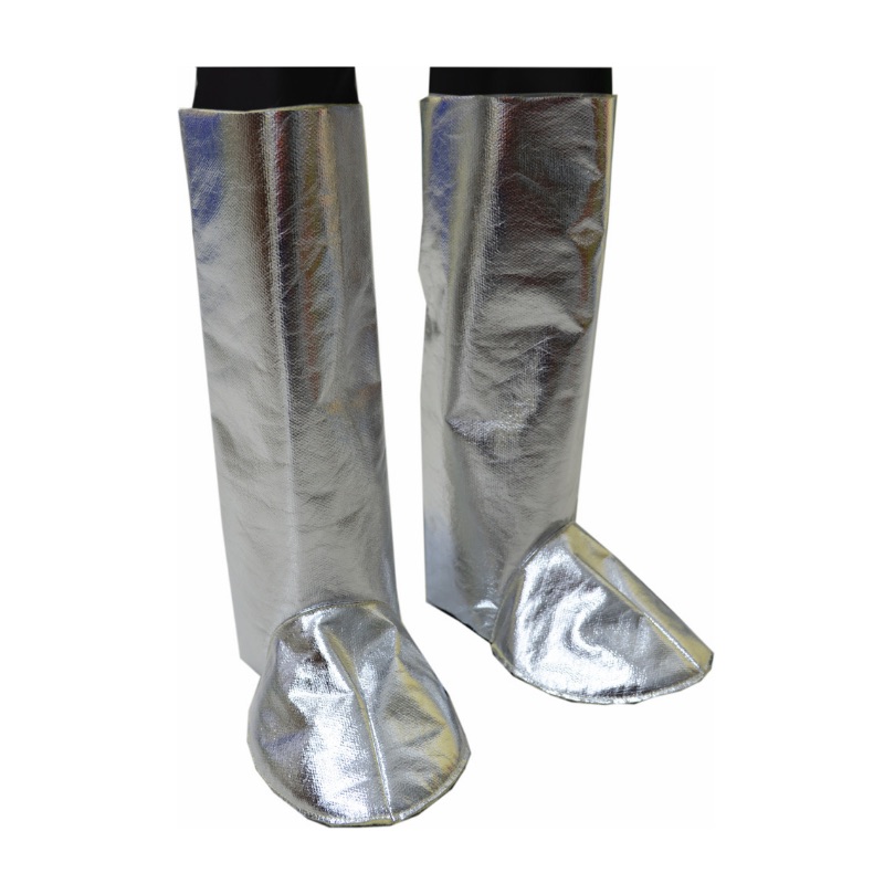 Бахилы изготовлены из алюминизированной пара-арамидной ткани, которая эффективно отражает тепло и снижает тепловую нагрузку. Конструкция предусматривает удобную застежку сзади на огнестойкой контактной ленте, а также кожаные ремешки под подошвой для надежной фиксации. Регулируемая посадка обеспечивает плотное прилегание и комфорт при работе.